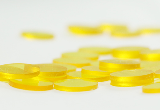 人眼具有抵御视网膜光损伤的自然防御机制,角膜和晶状体可阻止紫外线(波长<400nm)到达视网膜。同时,随着年龄的增长,晶状体颜色不断变黄,可以滤过短波长蓝光(波长 400~500nm)[2]。但白内障手术后,人眼晶状体自然防御机制消失。为了减少视网膜损伤、优化入眼的光谱组成,人工晶状体材料中添加了不同的吸收剂:添加紫外线吸收剂以过滤紫外线,人工晶状体呈无色透明状态;额外添加蓝光吸收剂,过滤了蓝光而呈现黄色,也叫做蓝光滤过型人工晶状体。